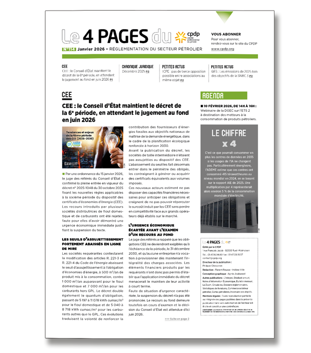 30 janvier 2026Le 4 pagesLettre d'information dédiée à la réglementation du secteur pétrolier en vigueur et en cours de rédaction. -