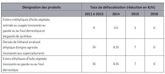 - Réduction du taux de la défiscalisation de TICPE Biocarburants