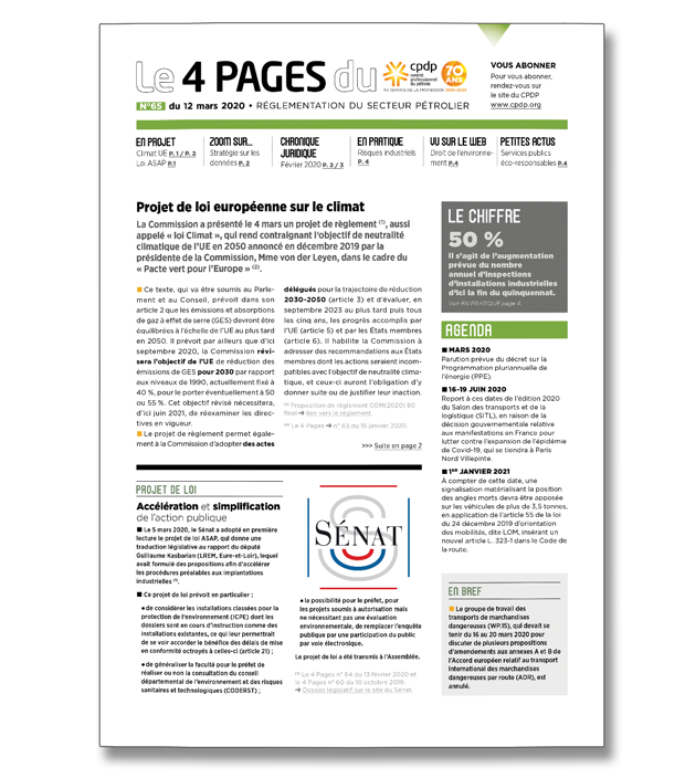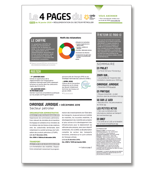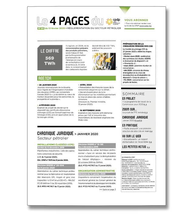 14 février 2020Le 4 pagesLettre d’information dédiée à la réglementation du secteur pétrolier en vigueur et en cours de rédaction. -