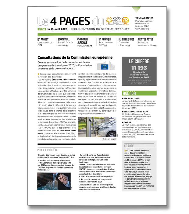 21 avril 2020Le 4 pagesLettre d’information dédiée à la réglementation du secteur pétrolier en vigueur et en cours de rédaction. -