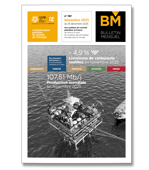 Synthèse de l'activité pétrolière (pétrole brut et produits pétroliers raffinés) en France, de l'amont à l'aval (production, importations, exportations, raffinage, livraisons, consommation), et aperçu des principales données dans le monde.