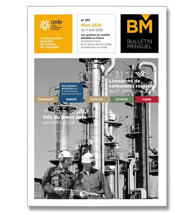 Synthèse de l'activité pétrolière (pétrole brut et produits pétroliers raffinés) en France, de l'amont à l'aval (production, importations, exportations, raffinage, livraisons, consommation), et aperçu des principales données dans le monde.