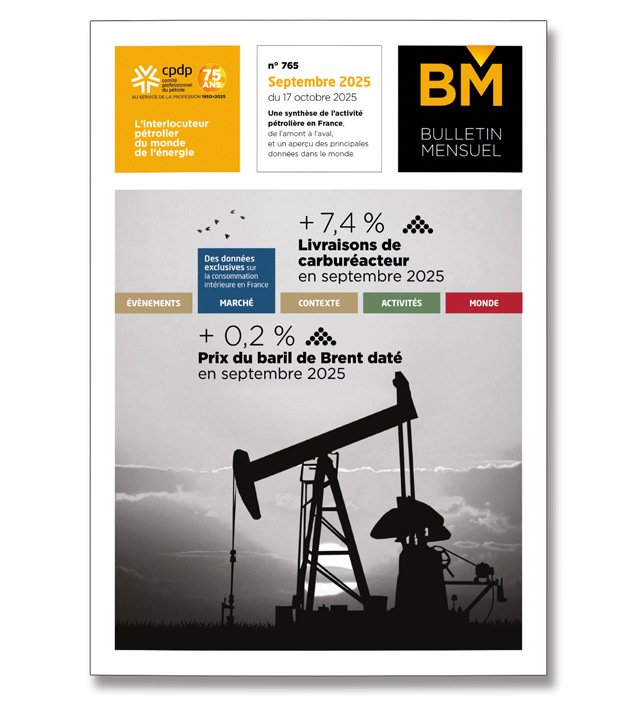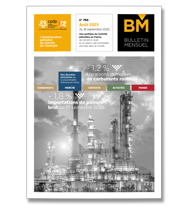 Avec une périodicité mensuelle, ce Bulletin informe les lecteurs des évolutions et tendances des marchés pétroliers. Ce document de 36 pages reprend les principales statistiques pétrolières françaises, de la production de pétrole brut à la consommation de produits pétroliers en passant par le commerce extérieur, le raffinage, les prix et taxes…